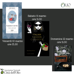 Olio Capitale: le nostre autrici a Trieste10/03/2023Dal 10 al 12 marzo si svolge a Trieste Olio Capitale, fiera dei migliori oli extra vergini. Centinaia di etichette tra oli Dop, Igp, biologici, italiani, stranieri, fruttati intensi, medi o leggeri. Un'occasione più unica che rara per conoscere da vicino questo prodotto, insostituibile sulle nostre tavole! Durante la manifestazione, alcune nostre autrici presentano i loro libri... Più informazioni |
