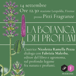 "La botanica dei profumi" a Pitti Fragranze14/09/2024"La botanica dei profumi" di Nicoletta Ramella Pezza sarà presentato a Firenze nell'ambito di Pitti Fragranze, il salone dedicato al mondo della profumeria artistica internazionale. L'autrice dialogherà con Fabrizia Malerba, editor del libro e agronoma, sul profondo legame fra natura e profumi. Dove: Unicredit Fragranze Arena, Stazione Leopolda, Firenze Quando: sabato 14 settembre 2024, ore 12:30 Più informazioni |